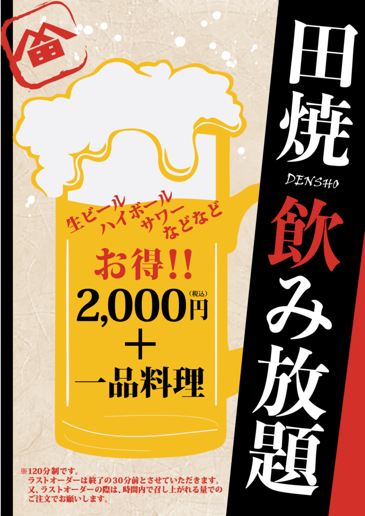 120分飲み放題! 2,100円 → 2,000円 受付人数 1名様~